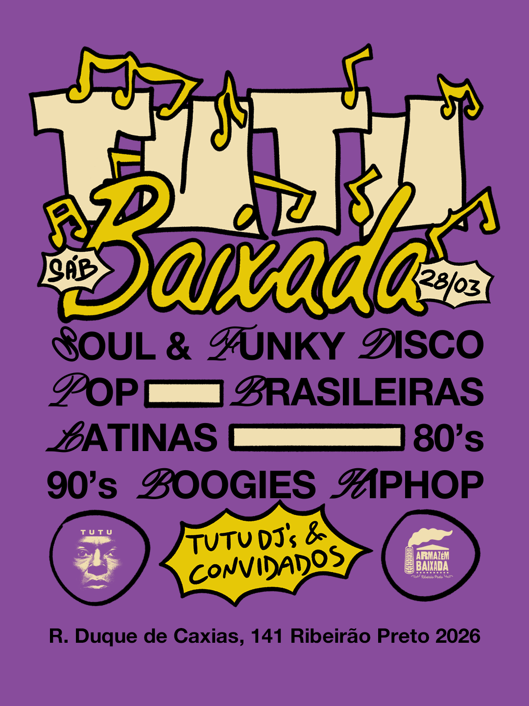 Founded in 2002, Tutu DJs was born as an alternative for DJs in Ribeirão Preto to explore free DJing and promote itinerant parties that value musical diversity. The collective has become a reference in the city's cultural scene, bringing together diverse audiences in events that explore different musical styles, such as hip hop, soul, funk, disco, Brazilian music, and jazz.
